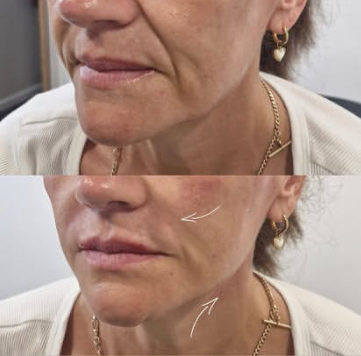- Nasolabiala veck & marionettlinjer – för att släta ut veck kring munnen